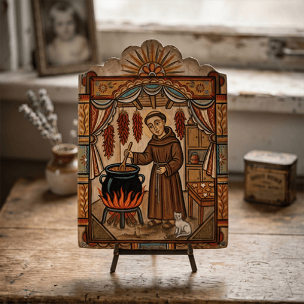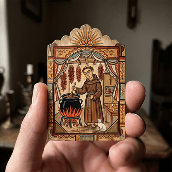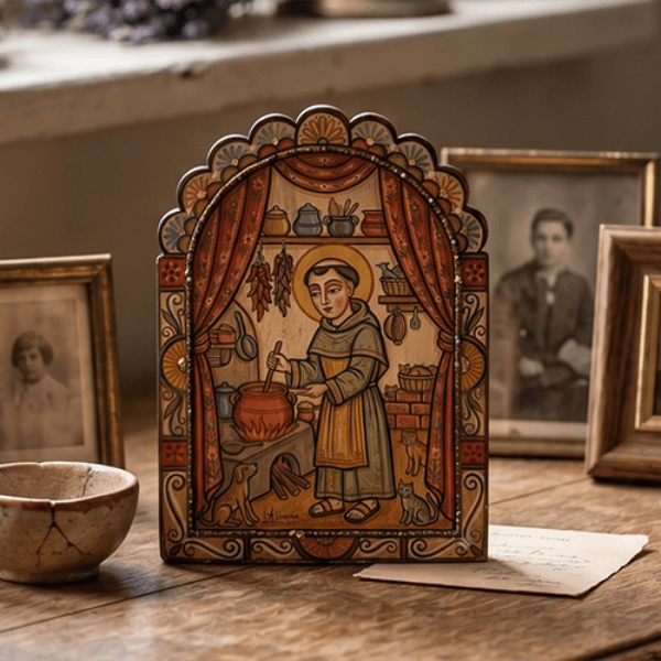 San Pasqual would be a truly meaningful gift for a chef opening a new restaurant, a home cook who finds joy in their kitchen, or someone embarking on a religious vocation. It serves as a beautiful reminder that even the most humble tasks can be sanctified through love and devotion, encouraging them to find spiritual grace in their daily work and to always remember the sacred gift of nourishment, both physical and spiritual.